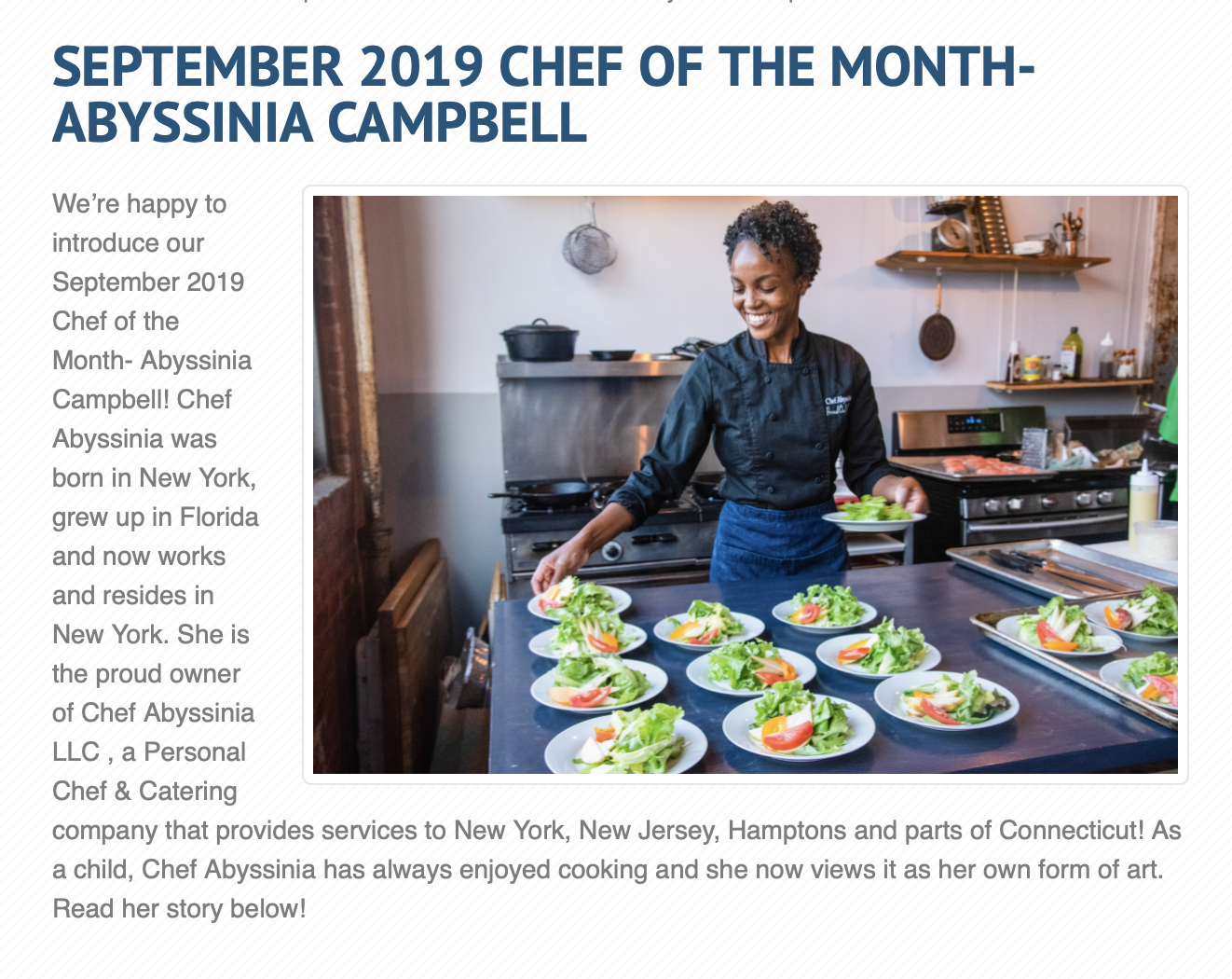 Chef Abyssinia has been featured in culinary publications, industry events, and interviews throughout New York City and the surrounding region.
